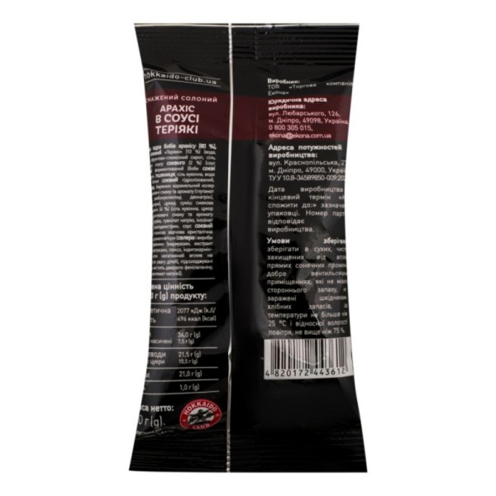 Горіхи, Hokkaido, Club, арахісу, смажений, соусі, теріякі, 60, г, 4820172443612