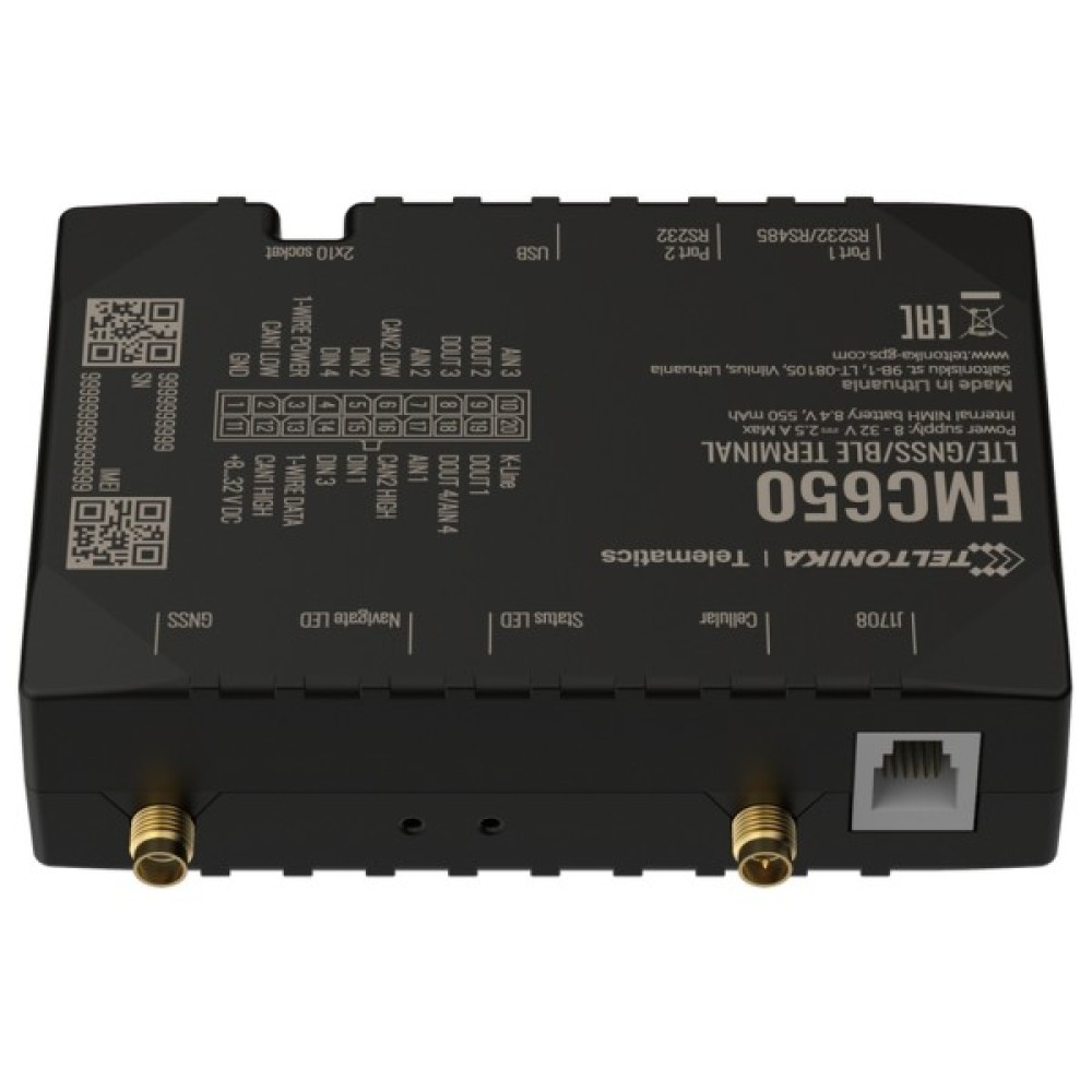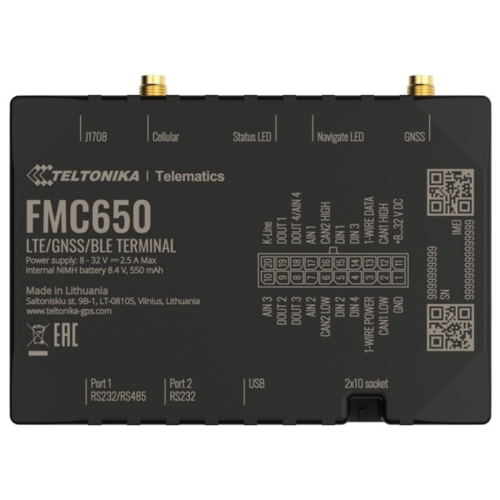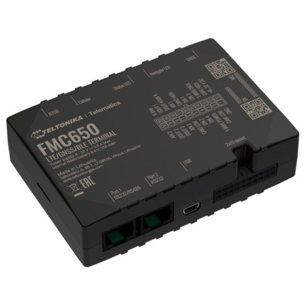 Teltonika FMC650 є прямим наступником нині найпопулярнішого пристрою 4G PROFESSIONAL лінійки – FMC640. FMC650 має покриття мережі 4G (LTE Cat 1), включаючи зворотню сумісність 2G (GSM). Прилад оснащений модулями GNSS і LTE, зовнішніми антенами GNSS і LTE. Окремий GNSS модуль підвищує точність трекеру. У порівнянні з FMC640 – FMC650 має новий процесор, який покращує обчислювальну потужність пристроїв. Вбудований CAN-модуль із перемиканням, який дозволять вам використовувати пристрій у мережі CAN з великою кількістю вузлів. Нарешті, його можна живити через USB для спрощення процесу налаштування.