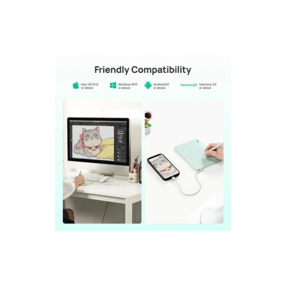 Комплектація: планшет, перо P59, кабель Type-C, подовжувальний кабель Type-C, 3 наконечники, кліпса для зміни наконечників, інструкція.