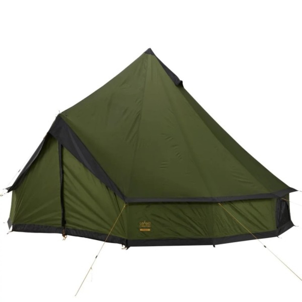 Підлога намету з'єднана із зовнішнім тентом, що виключає потрапляння вологи та комах всередину намету. З трьох сторін намет має великі вентиляційні клапани з москітними сітками, а аткож три вентиляційних клапани вгорі, завдяки чому в наметі відмінна вентиляція повітря і відсутність конденсату. Широкі вхідні двері сформовані металевим каркасом та оснащені москітною сіткою. Поліуретанове просочення зовнішнього шару та проклеєні шви забезпечують водостійкість 4000 мм водяного стовпа, що дозволяє не боятись проникнення вологи навіть під час затяжних опадів. Оливковий колір забезпечує відмінні маскувальні властивості. Grand Canyon Indiana 8 є одним з найбільших серед восьмимісних наметів шатрової конструкції, при цьому має достатньо невелику вагу 9 кг, що робить його дуже зручним для кемпінгу.