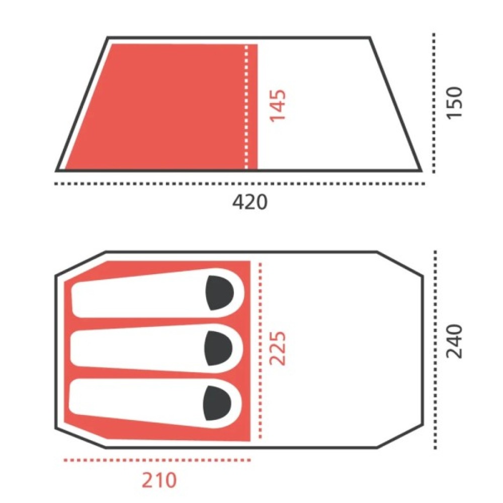 • Зовнішній намет (Д х Ш х В): 420 х 240 х 150 см
