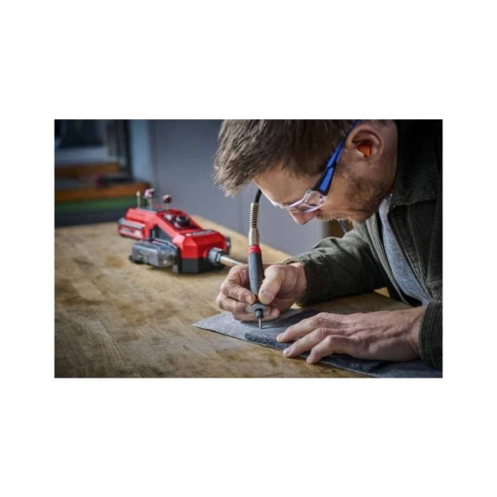 Акумуляторний шліфувально-гравіювальний інструмент складається з компактної базової станції з гніздом для акумулятора, вала завдовжки 92 см і тонкого наконечника, до якого за допомогою ручки-фіксатора кріпиться приладдя. Завдяки універсальному застосуванню інструмент стає практичним багатофункціональним інструментом. Завдяки гнучкому валу, який слугує з'єднанням між гравіювальним штифтом і базовою станцією, ним можна керувати з максимальною гнучкістю.