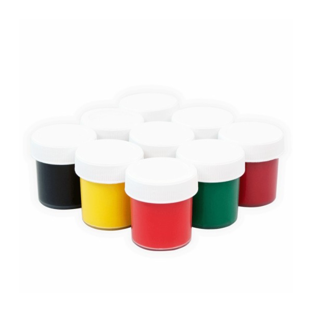 До складу набору входить 9 фарб у банках базових кольорів.