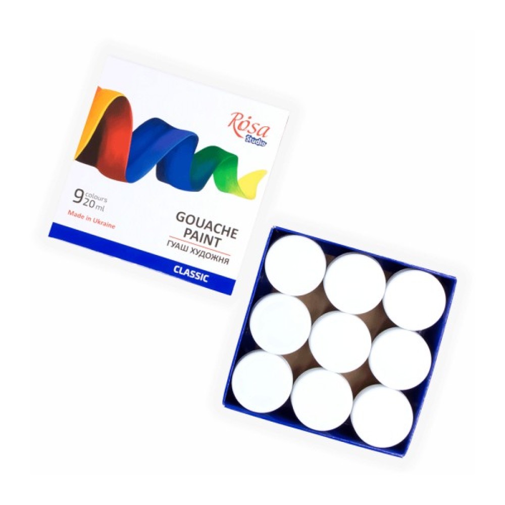 Гуашеві, фарби, Rosa, Studio, Classic, 9, кольорів, 20, мл, 4823098527046