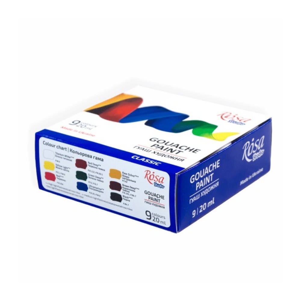Гуашеві фарби Rosa Studio Classic 9 кольорів 20 мл (4823098527046)