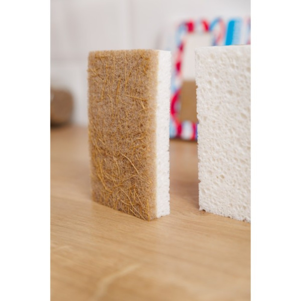 Абразивний шар з кокосового волокна можна використовувати як скрабер для відтирання стійких забруднень, але при цьому він досить делікатний і не пошкоджує поверхні.