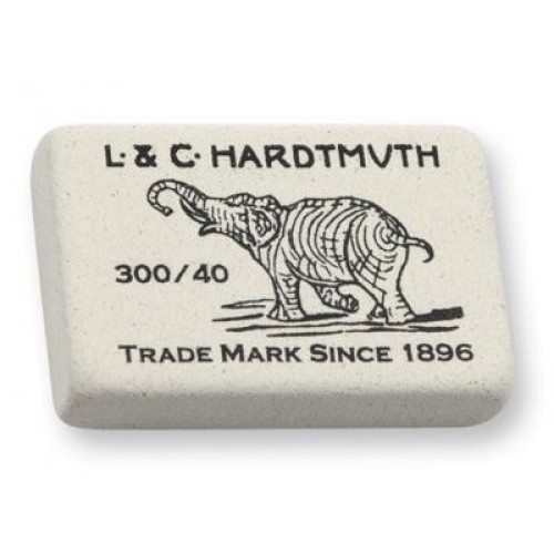 - м'який ластик , виготовлений з натурального матеріалу. Застосовується для стирання сліду олівців твердості 8В–10Н.