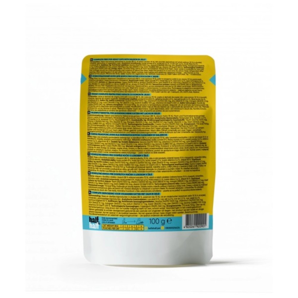 Вологий корм для кішок Half&Half з лососем у желе – ідеальне рішення для дорослих котів, з особливою увагою до якості та збалансованого харчування. Поєднання лосося й курки задовольнить найвибагливіших гурманів, підтримуючи здоров'я улюбленців. Високий вміст вологи підтримує водний баланс, що сприяє профілактиці сечокам'яної хвороби, особливо важливо для котів на сухих раціонах.