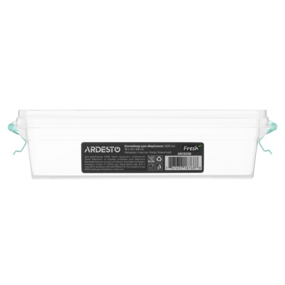 Харчовий контейнер Ardesto Fresh 0.52л, пластик, прямокутна, блакитний (AR1303B)