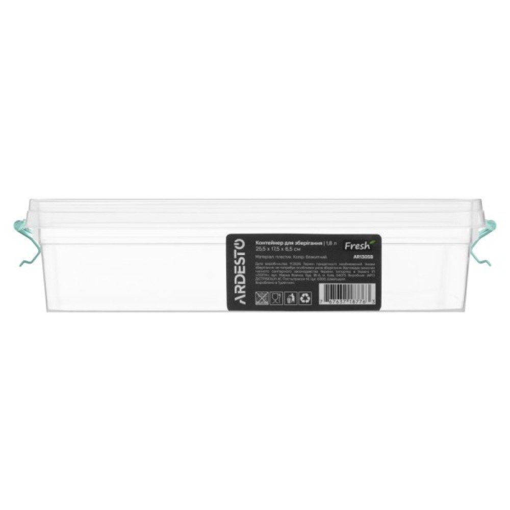 Харчовий контейнер Ardesto Fresh 1.8л, пластик, прямокутна, блакитний (AR1305B)