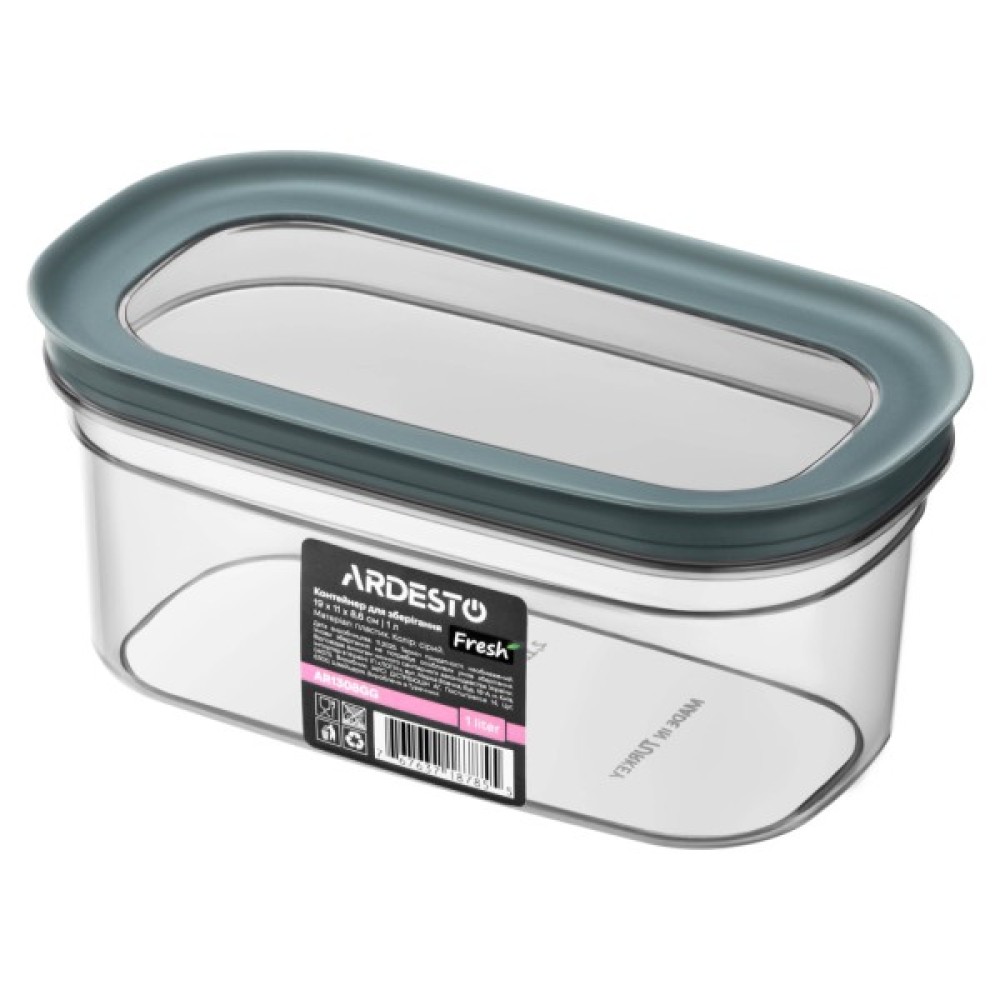 Харчовий контейнер Ardesto Fresh 1л, пластик, прямокутна, сірий (AR1308GG)