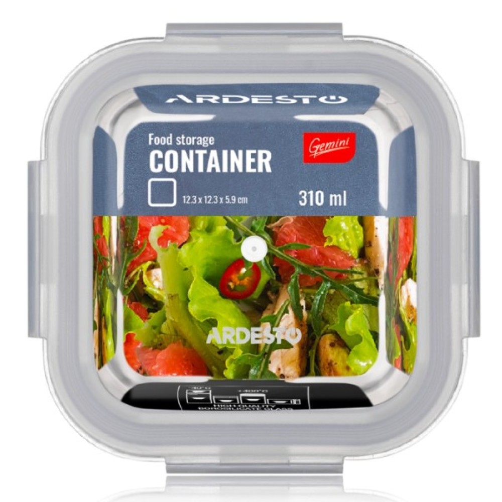 Харчовий контейнер Ardesto Gemini квадратний, 0.31л, боросилікатне скло, прозорий (AR1230BSQ)