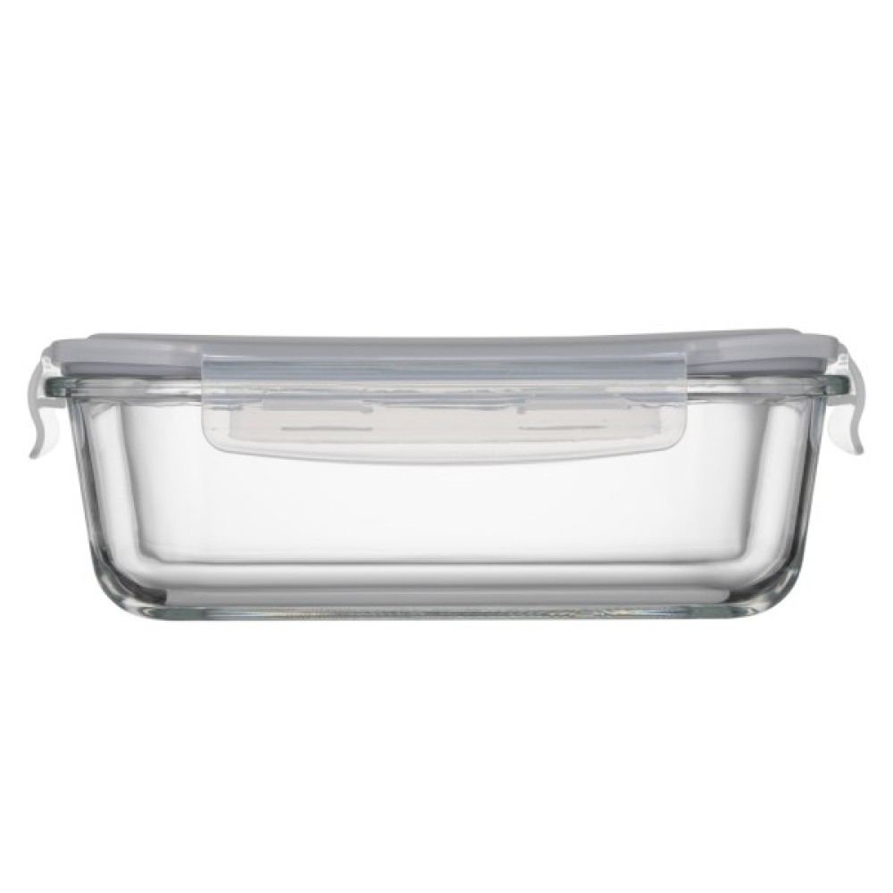 Контейнер виготовлено з екологічного боросилікатного скла, яке не вбирає запахів, зберігаючи аромат і смак продуктів, та гарантує довговічність виробу. Пластикова кришка забезпечує герметичність. Завдяки термостійкості виробу його можна залишати в морозильній камері, холодильнику, використовувати для підігрівання страв в мікрохвильовій печі або приготування в духовій шафі (без кришки). Виріб легкий у догляді – його можна мити в посудомийній машині. У контейнері зручно як зберігати страви або продукти вдома, так і брати з собою в офіс чи в подорож.