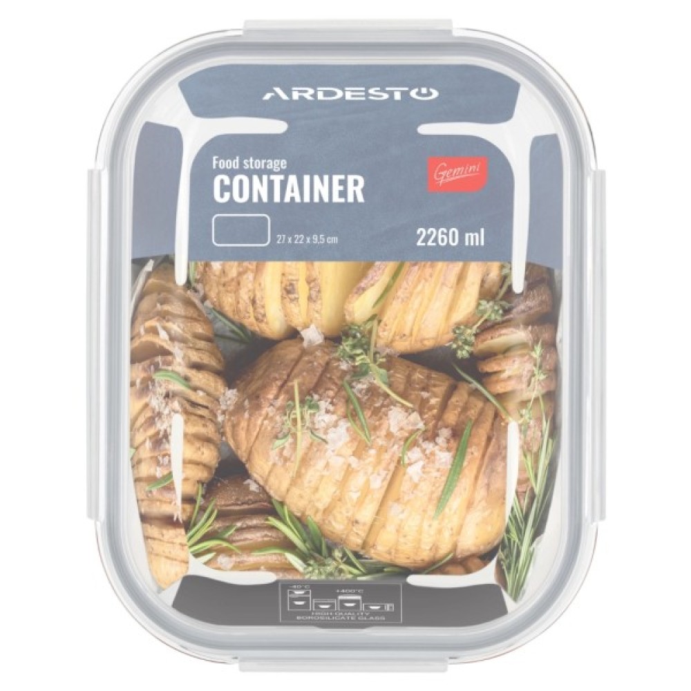 Харчовий контейнер Ardesto Gemini прямокутний, 2.26л, боросилікатне скло, прозорий (AR1222RCB)