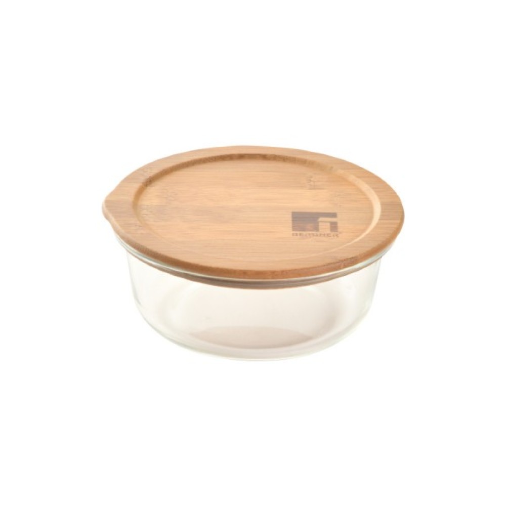 Харчовий контейнер Bergner Greener — це надійний вибір для зберігання різноманітних продуктів. Виготовлений з боросилікатного скла у кольорі натуральної деревини, контейнер має кришку з бамбуку, що додає природної естетики. Антипригарне покриття забезпечує легке очищення та запобігає прилипанню їжі. Мити контейнер у посудомийній машині не рекомендується, щоб зберегти якість покриття. Рекомендовано ручне миття для довготривалого використання.
