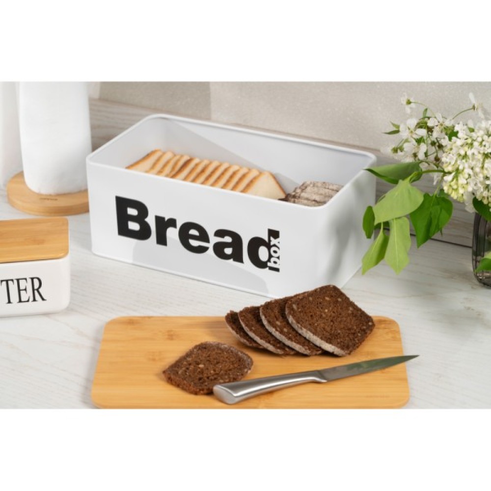 У хлібниці ARDESTO Midori хлібобулочні вироби залишаться свіжими надовго. Герметична кришка запобігає висиханню та псуванню, а також захищає від вологи. Конструкцію прямокутної форми розміром 33 × 18 × 13 см виготовлено з металу білого кольору та доповнено бамбуковою кришечкою, тож вона вдало пасуватиме чи не на будь-якій кухні. Доглядати за виробом нескладно, проте не рекомендовано мити в посудомийній машині.
