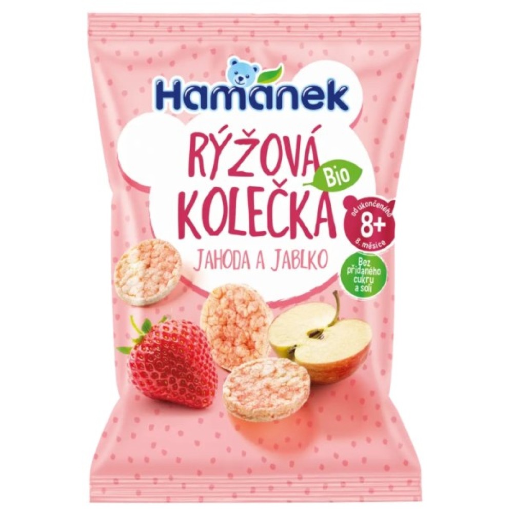 Органічні рисові хлібці Hamánek Полуниця та яблуко 35г — виготовлені з органічного повітряного рису та містять органічні фрукти і ягоди: полуницю та яблуко.