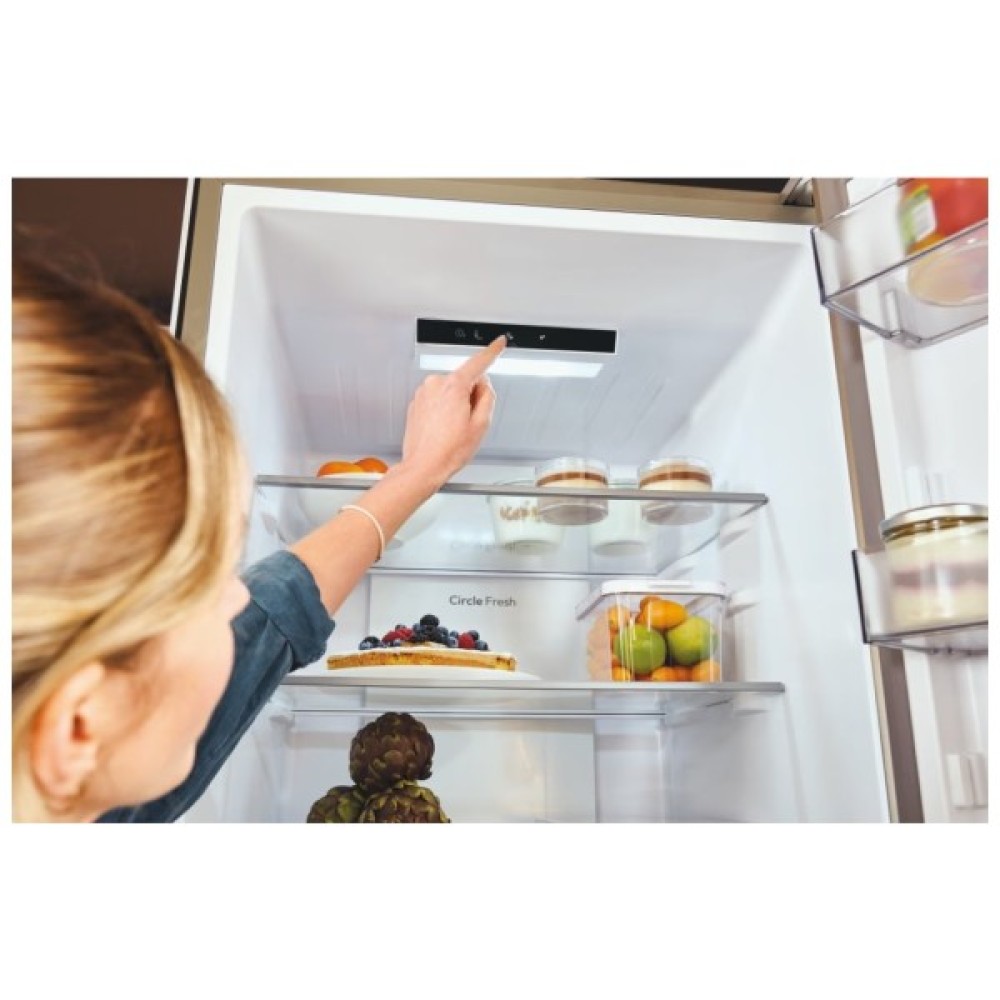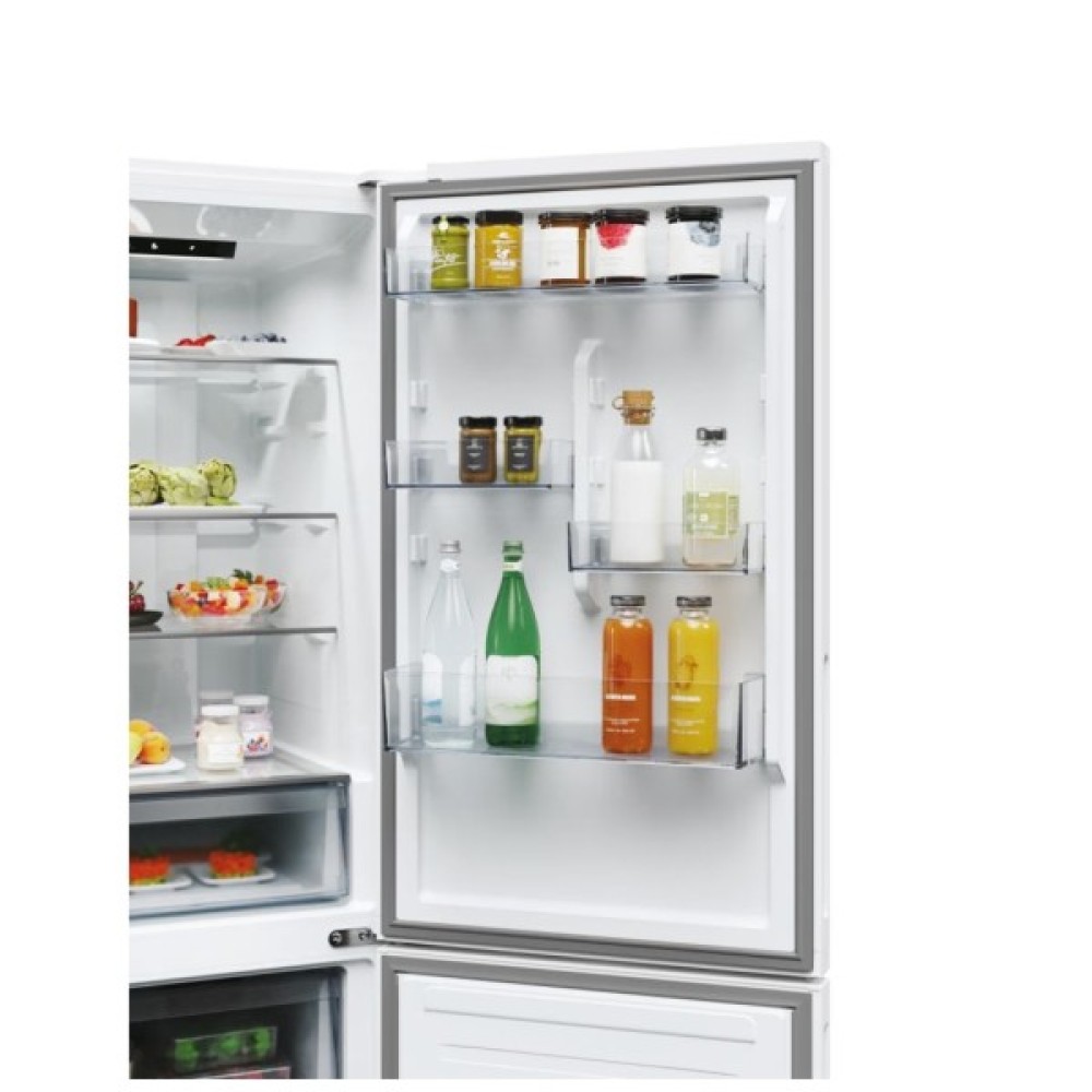 Особлива увага у моделі Candy CNCQ2T618EW приділена зоні свіжості 0°C, яка ідеально підходить для зберігання м'яса і риби, зберігаючи їх натуральний смак і текстуру завдяки інноваційній технології Circle Fresh. Це рішення підтримує оптимальну циркуляцію повітря всередині камери, що допомагає довше зберегти свіжість фруктів і овочів.