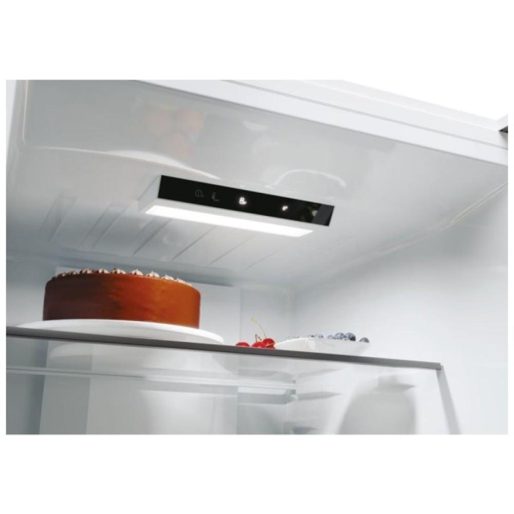 Цей холодильник також відрізняється елегантним дизайном: металеві дверцята з інтегрованими ручками і приховані петлі надають йому сучасності. Внутрішнє освітлення забезпечує приємну видимість всіх відділень, що дозволяє без зусиль знайти потрібний продукт навіть у темний час доби.