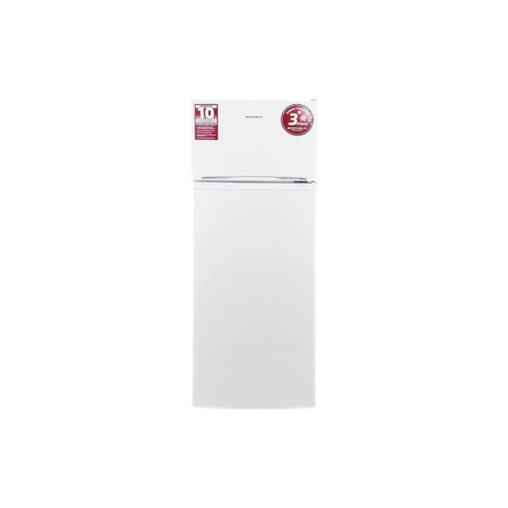 Холодильник Grunhelm GRW-143DD - це досконале поєднання сучасних технологій та ергономічного дизайну, що забезпечує довготривале зберігання продуктів і стильний вигляд у будь-якому інтер'єрі. Ця двокамерна модель вразить вас своєю просторістю, адже загальний об'єм становить 209 літрів, з яких на холодильну камеру припадає 169 літрів, а морозильну - 40 літрів. Наявність верхнього розташування морозильного відсіку робить його надзвичайно зручним у повсякденному користуванні.