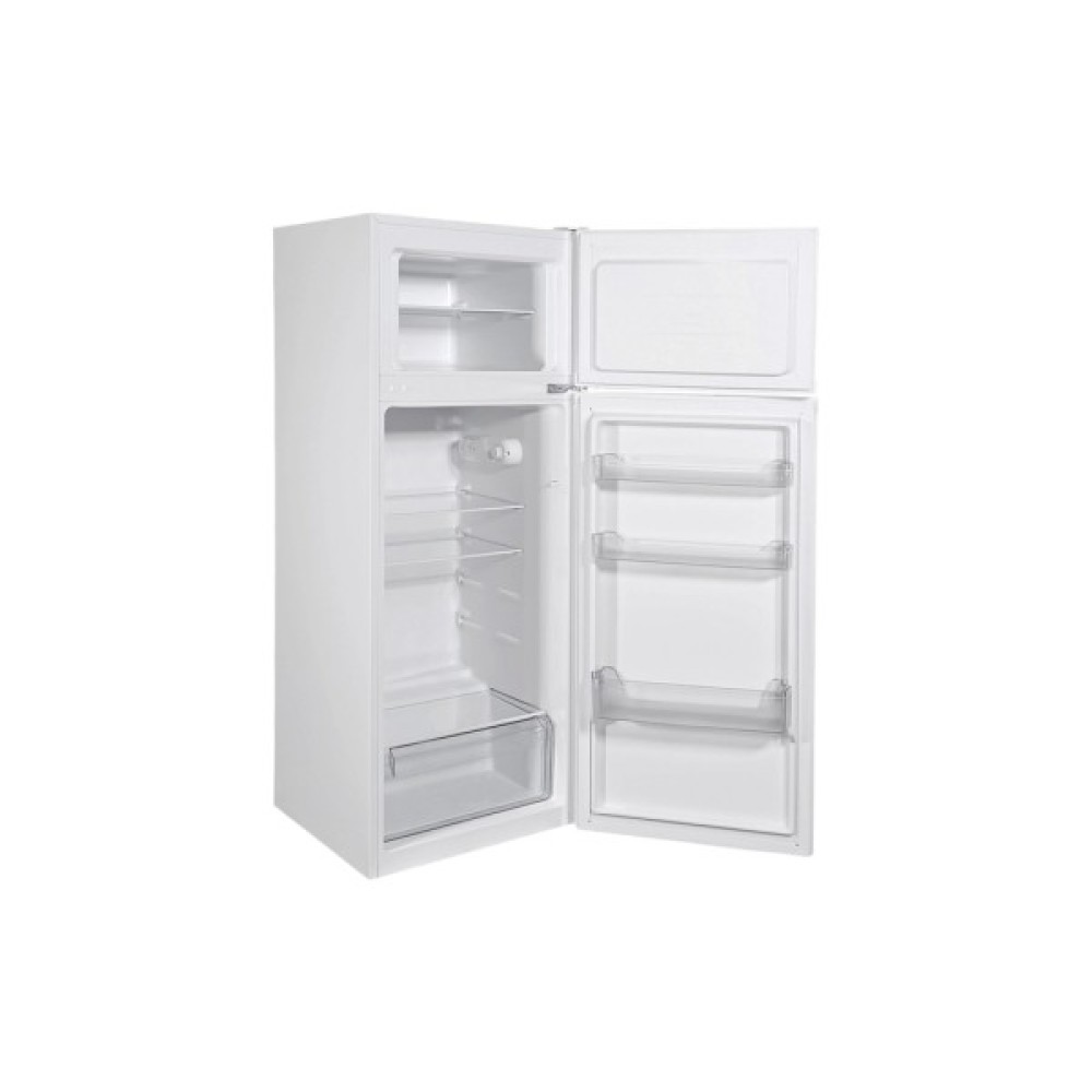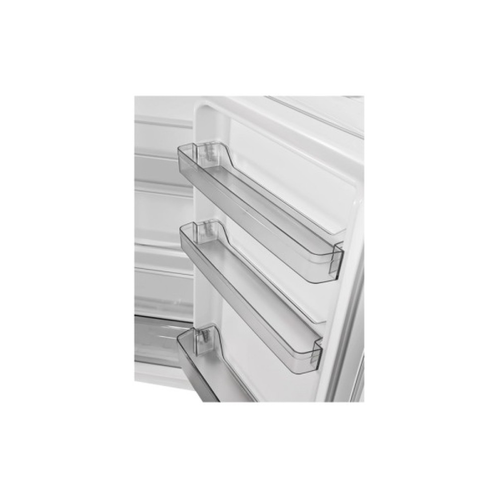 Завдяки функції перенавішування дверей, ви з легкістю адаптуєте установку холодильника під особливості планування вашої кухні. Компактні розміри (143 см у висоту, 54.5 см у ширину і 55.5 см у глибину) та елегантний білий колір підкреслять стильність і мінімалістичність сучасного інтер'єру.