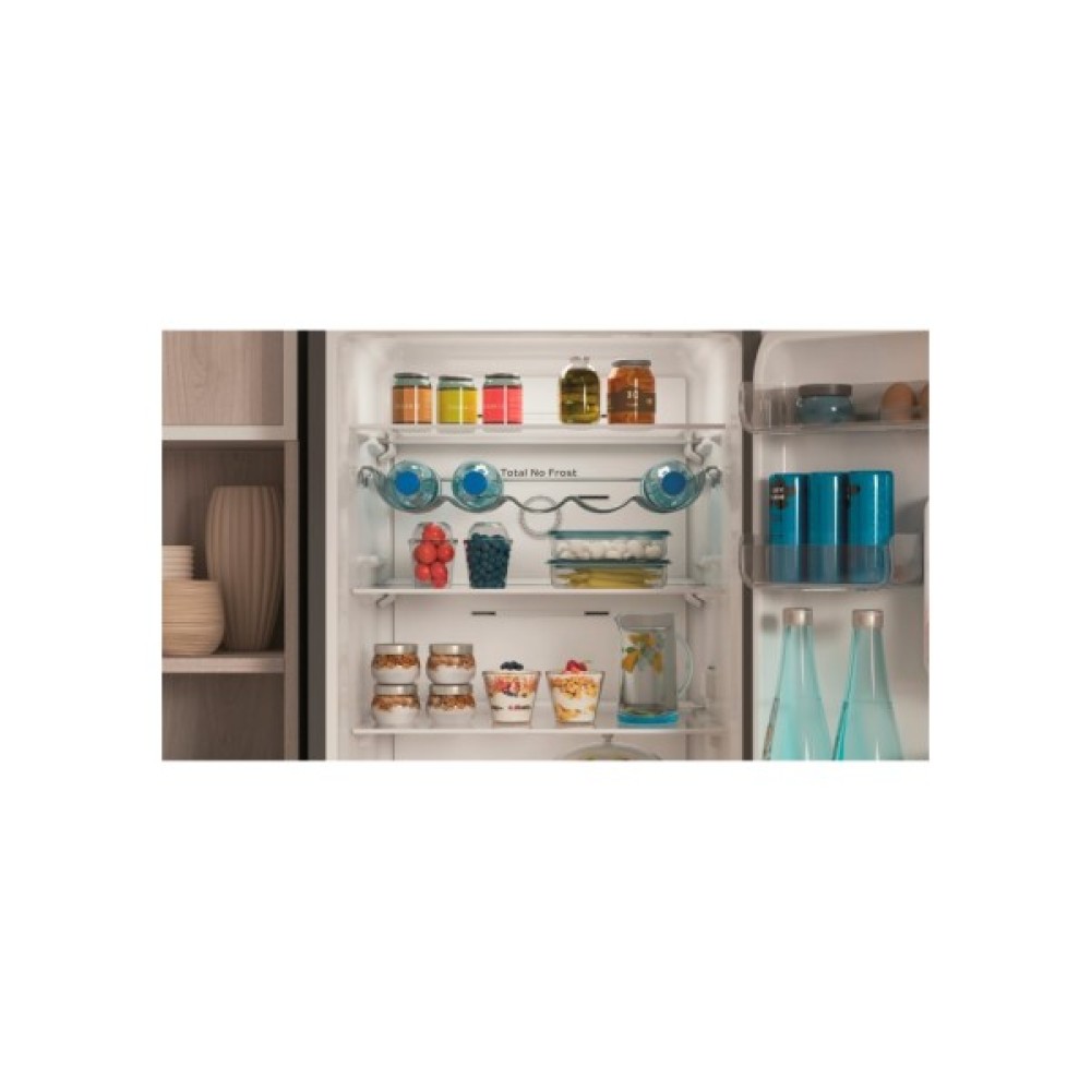 Однією з ключових особливостей цієї моделі є система Total No Frost, яка забезпечує ідеальну циркуляцію холодного повітря, попереджаючи утворення льоду як у холодильній, так і в морозильній камерах. Це значить, що вам більше не потрібно витрачати час на ручне розморожування. Продукти залишаються свіжими довше завдяки максимальному збереженню природної вологості.
