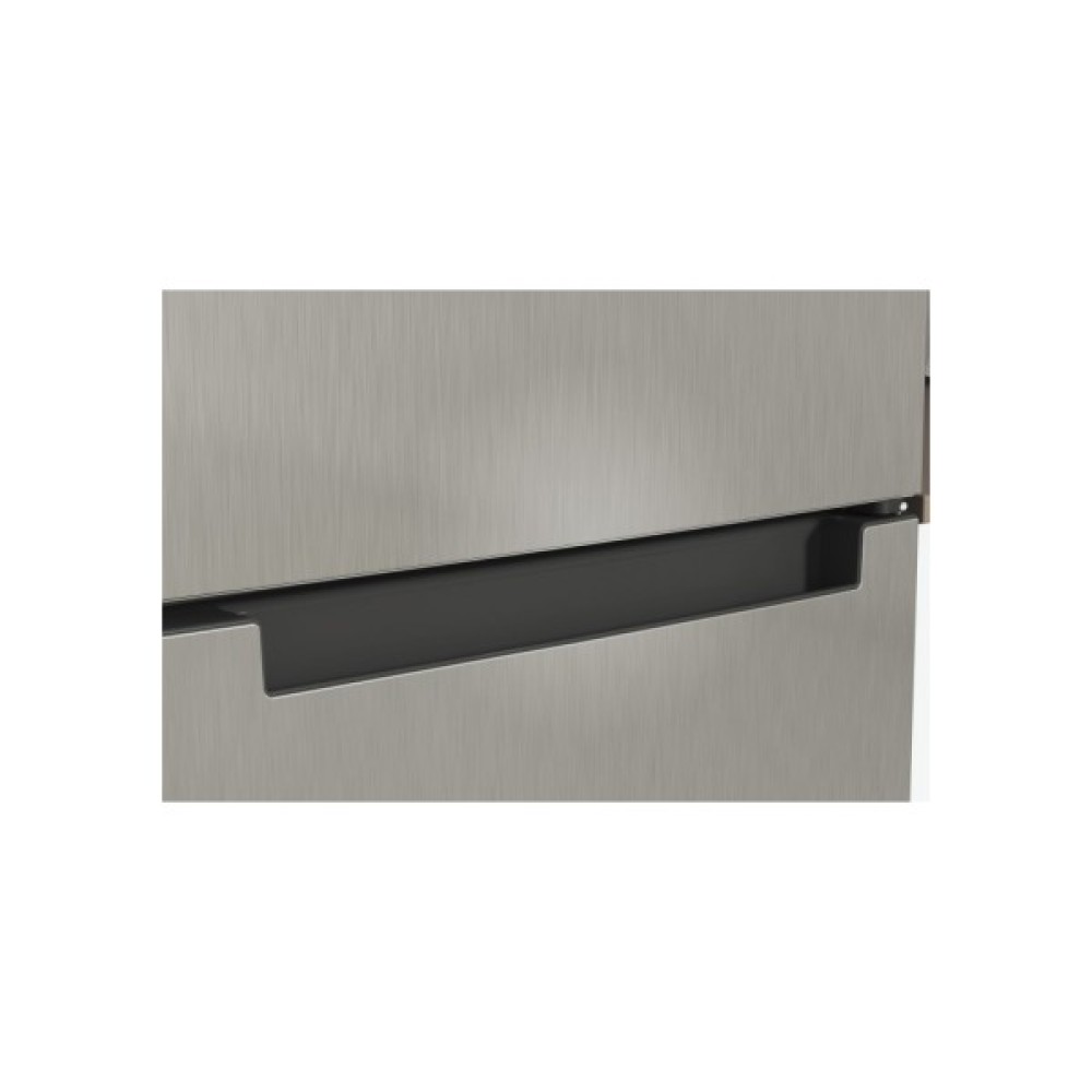 Стильний сірий колір корпусу разом з інтегрованою ручкою додають елегантності та сучасного шарму. Висота холодильника складає 191,2 см, а його габарити — 59,6 см у ширину і 67,8 см у глибину, що ідеально підходить для розміщення на будь-якій кухні.
