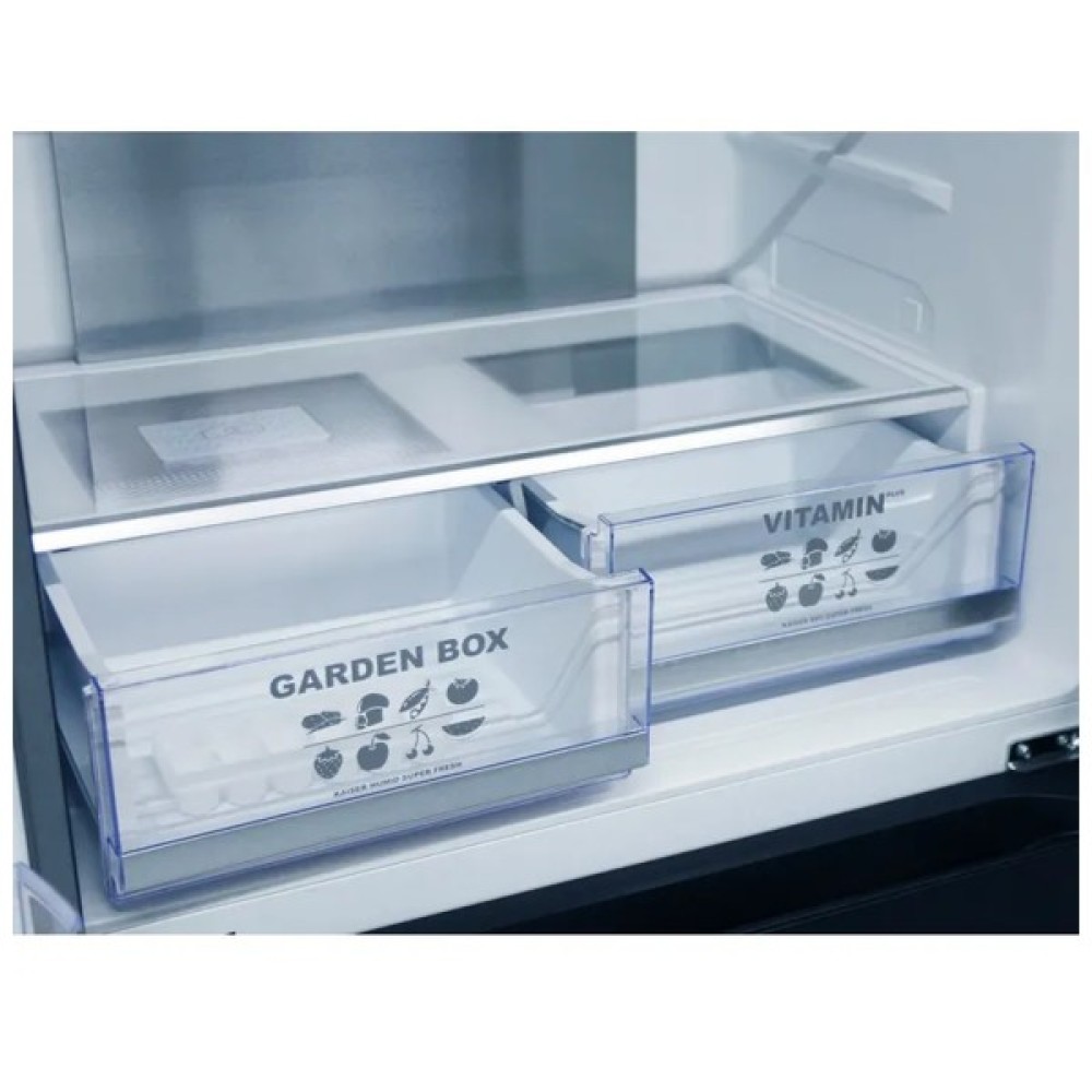 Холодильник Kaiser KS 80425 Em N — це поєднання інноваційної технології, розкішного дизайну та досконалих функцій, створених для справжніх цінителів якості. Цей багатодверний холодильник з загальним об'ємом 506 літрів пропонує бездоганну організацію простору для зберігання усіх продуктів: від великих набрiв і закусок до міксу овочів і фруктів.