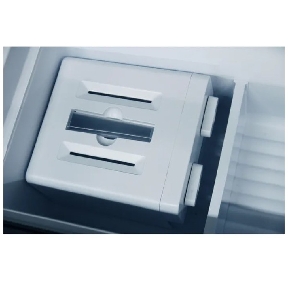 Однією з ключових особливостей є система No Frost, що гарантує автоматичне розморожування як холодильного, так і морозильного відділень. Це забезпечує рівномірний розподіл температури завдяки циркуляції повітря, що, в свою чергу, підтримує свіжість продуктів, заощаджує енергію та зводить обслуговування до мінімуму. Всі продукти всередині захищені від утворення льоду, що значно полегшує догляд за технікою.