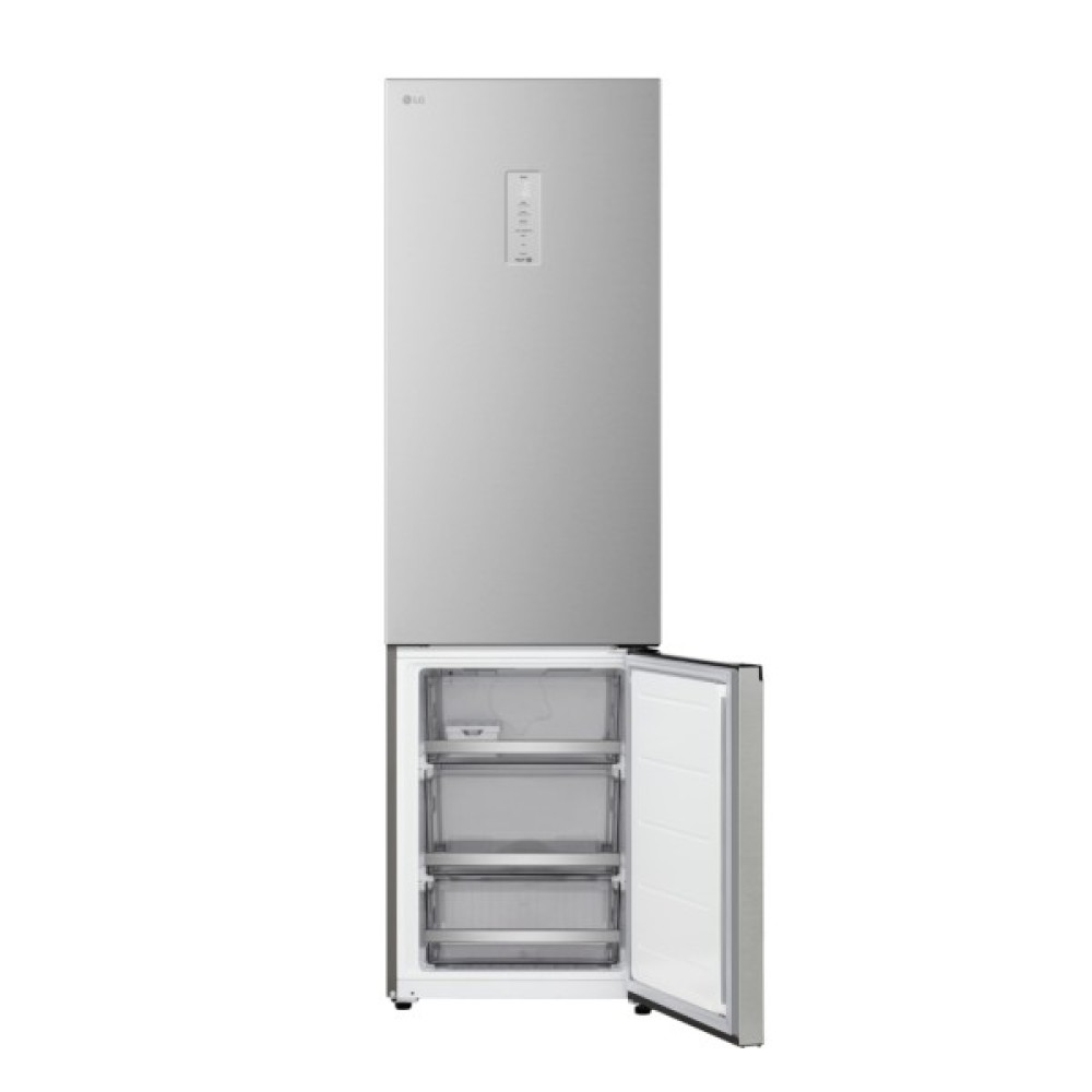Холодильник LG Electronics GC-B509EMKM із нижньою морозильною камерою поєднує систему Total No Frost та інверторний компресор для стабільної температури й тихої роботи. Корисний об’єм 375 л оптимально підходить для щоденного зберігання продуктів. Технологія DoorCooling+ забезпечує рівномірне охолодження по всьому об’єму. Підтримується керування через Wi-Fi за допомогою LG ThinQ.
