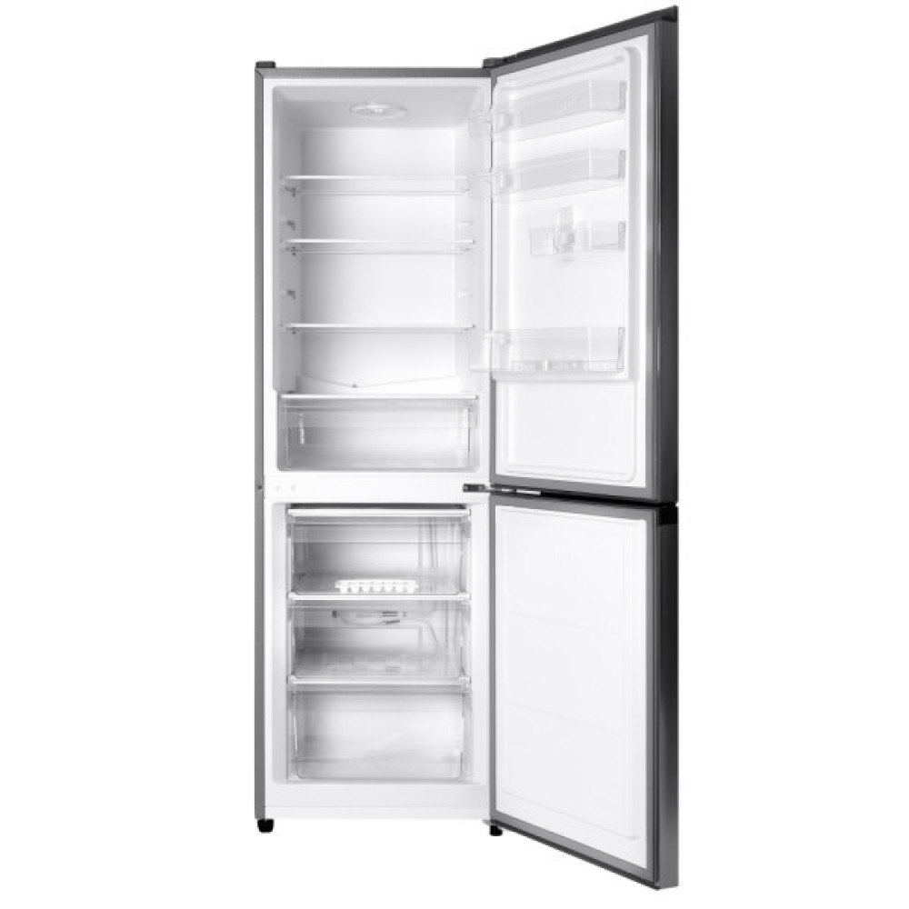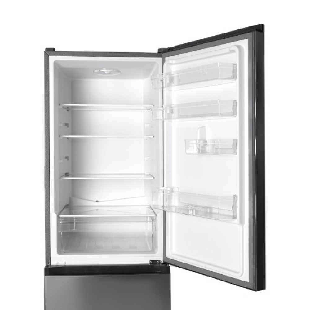 Цей окремостоячий двокамерний холодильник має вражаючий загальний об'єм у 299 літрів. Холодильна камера на 197 літрів оснащена трьома полицями, виготовленими з міцного загартованого скла. Цей матеріал забезпечує високу стійкість до навантажень. Структуровані полиці допомагають організувати простір для ефективного зберігання продуктів, розділяючи їх за типами для легшого доступу та забезпечення вашого комфорту.