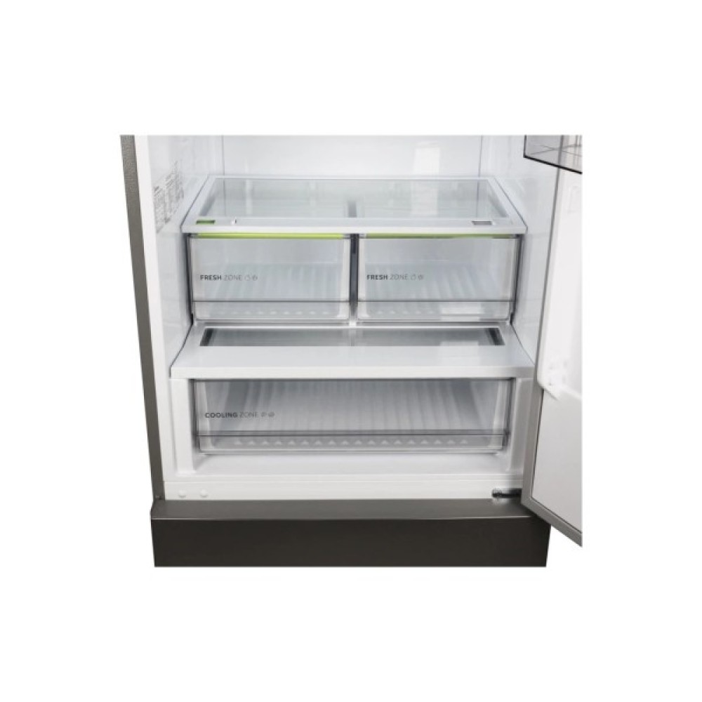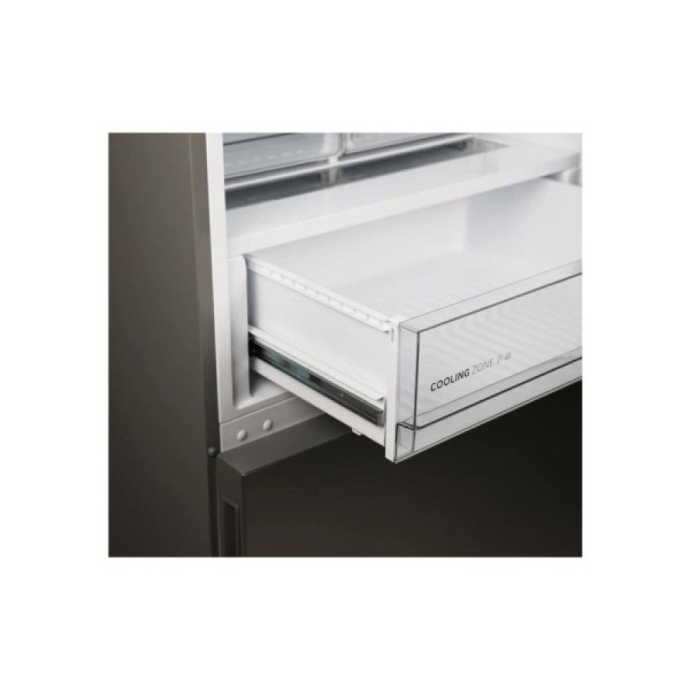 Холодильна камера об'ємом 316 л обладнана трьома полицями з загартованого скла, що витримують значні навантаження і забезпечують легкий догляд. Чотири дверні корзини дозволяють зручно розташувати дрібні продукти, а три контейнери для овочів підтримують оптимальний рівень вологості для тривалішого зберігання. Особливості конструкції, такі як полиця для пляшок, роблять холодильник ще зручнішим.