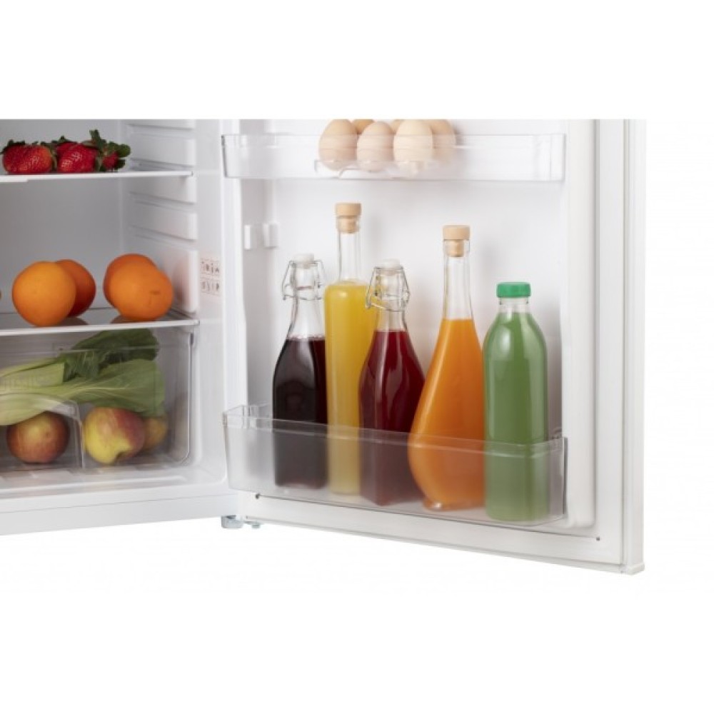 Загальний об'єм у 127 літрів дозволяє розмістити всі необхідні продукти, не займаючи при цьому багато місця у приміщенні. Цей холодильник має однокамерну структуру, що забезпечує легкість доступу до всіх продуктів. Говорячи про зручність, не можна не згадати про полицю для пляшок у дверях, яка стане у нагоді для зберігання ваших улюблених напоїв у вертикальному положенні, зберігаючи їхній смак і аромат.