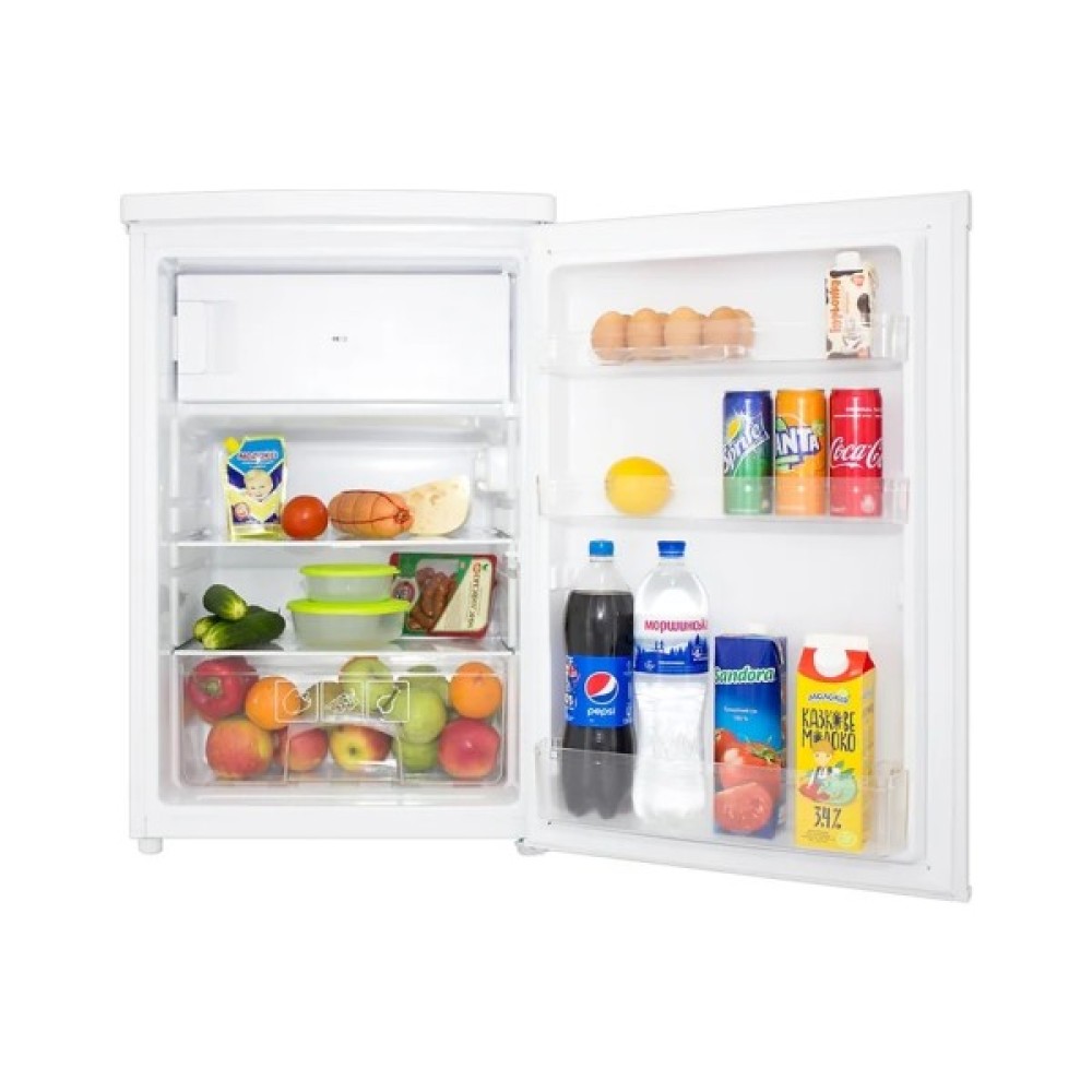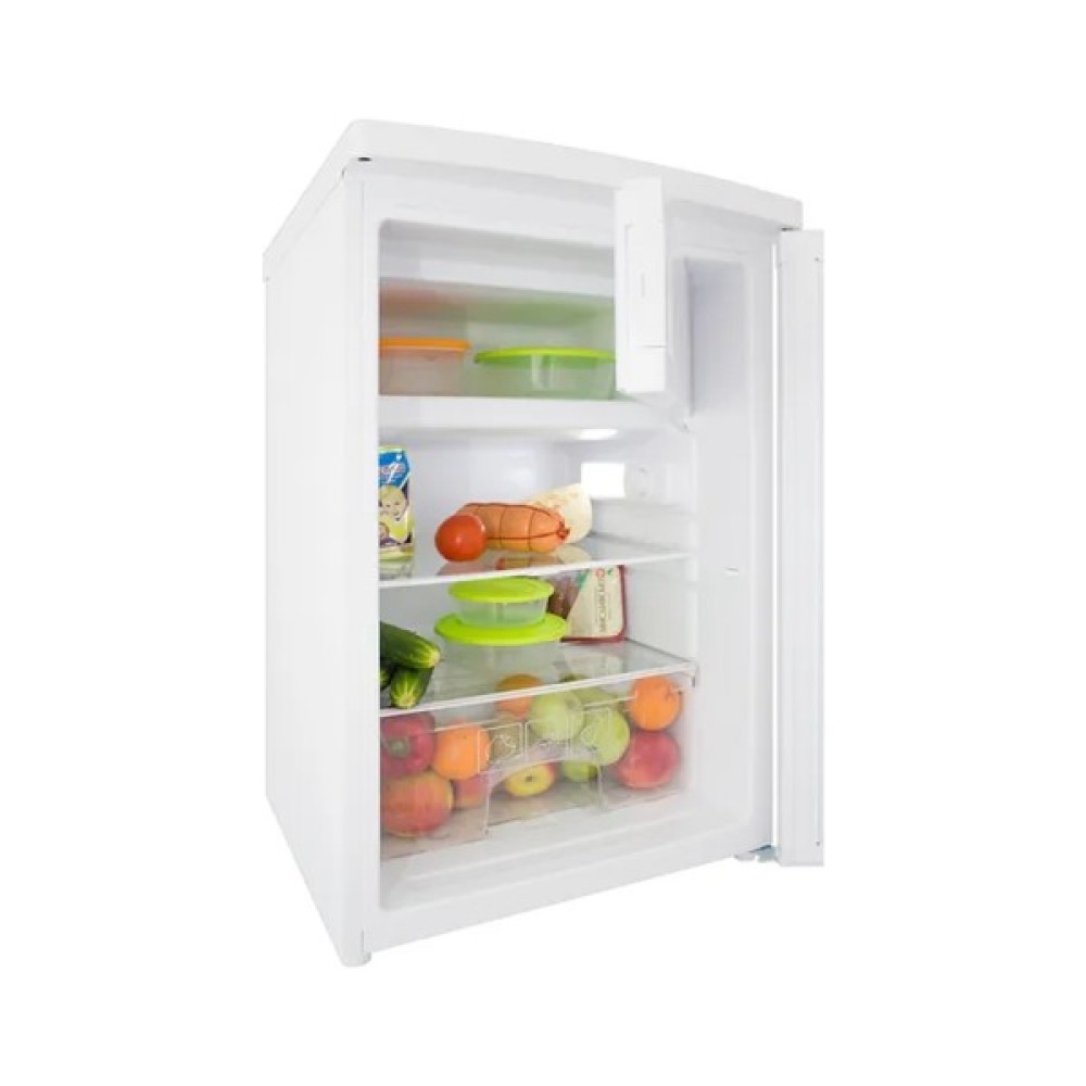 Однокамерний холодильник з загальним об'ємом 109 літрів ідеально підходить для невеликих сімей або одинаків. Внутрішній простір, що має корисний об'єм холодильної камери у 95 літрів, організовано так, щоб забезпечити максимальну зручність та легкість доступу до продуктів. Оснащений двома полицями, холодильник дозволяє раціонально використовувати кожен сантиметр. Три дверні корзини, включаючи полицю для пляшок, спростять зберігання напоїв та забезпечать ще більше простору для різноманітних дрібниць. Спеціальний контейнер для овочів створений для збереження свіжості овочів і фруктів, що особливо важливо для тих, хто цінує якість і здоров'я.