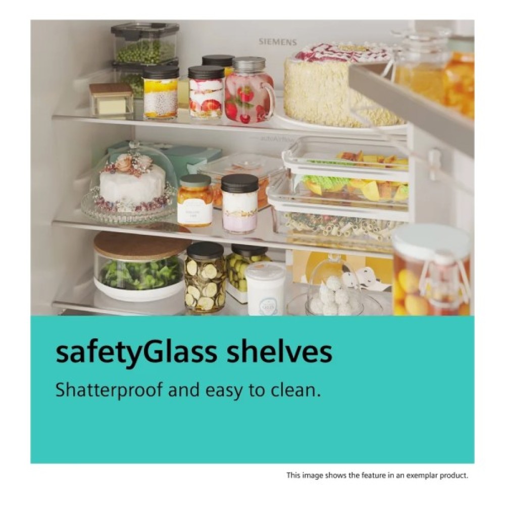 При працюючих 40 дБ рівня шуму, Siemens KG76NCXE0N стає практично нечутним, що забезпечує комфорт вдома. Для безпеки є функція блокування від дітей та сигналізація відкритих дверей — цей холодильник завжди стежить за вашим спокоєм. З можливістю переносити двері, його легко інтегрувати в будь-який інтер'єр.