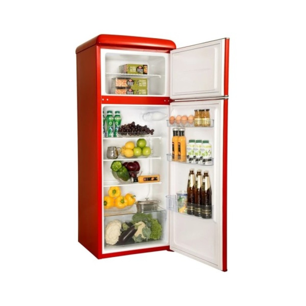 Холодильник Snaige FR24SM-PRR50E – це не просто прилад для зберігання продуктів, а частина вашого інтер'єру, яка вражає своїм унікальним дизайном. Виготовлений у стилі ретро, цей холодильник перетворює звичну кухонну техніку на витвір мистецтва. Його яскравий червоний колір і витончені мідні деталі додають інтер'єру особливого шарму. Власники ретро-холодильників SNAIGE вміють цінувати стиль і елегантність, тому цей прилад стане ідеальним вибором для тих, хто любить виділятися і не боїться бути у центрі уваги.
