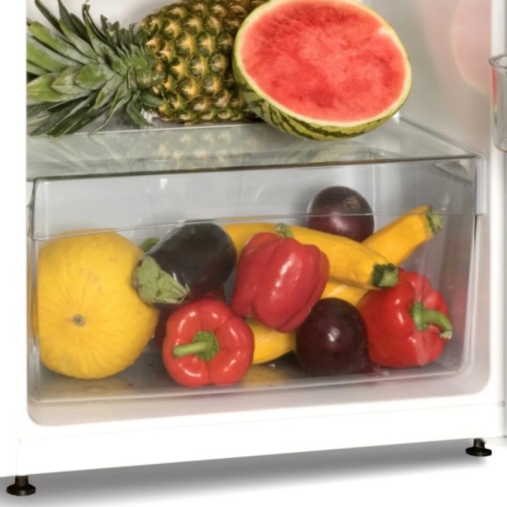 Загальний об'єм 260 л дозволяє з легкістю розмістити всі необхідні продукти. Корисний об'єм холодильної камери становить 201 л, що робить цей холодильник ідеальним для великих родин або тих, хто любить заздалегідь запасатися продуктами. Ваші овочі та фрукти завжди залишатимуться свіжими завдяки просторому контейнеру для овочів. Більш того, спеціальна зона свіжості забезпечить оптимальні умови зберігання для делікатних продуктів, таких як риба та м'ясо.
