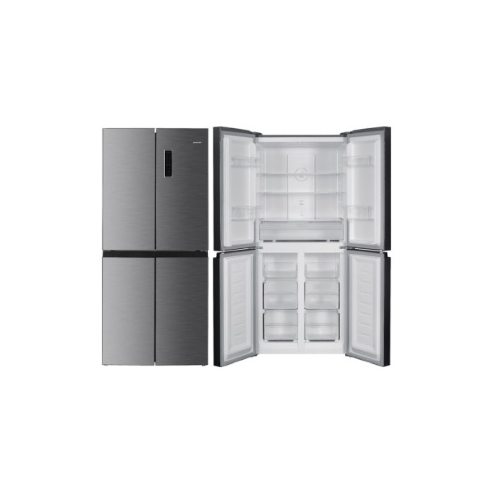 Snaige MRF30FB-P5CB2EH — сучасний багатодверний холодильник із стильним дизайном у кольорі нержавіюча сталь, який поєднує велику місткість, зручну організацію внутрішнього простору та сучасні технології охолодження. Модель призначена для окремого встановлення та оснащена врізними металевими ручками, що зберігають акуратний зовнішній вигляд без виступів. Загальний корисний об’єм холодильника становить 362 л, з яких 237 л припадає на холодильне відділення та 125 л — на морозильну камеру, що робить його зручним рішенням для сім’ї з кількох осіб.