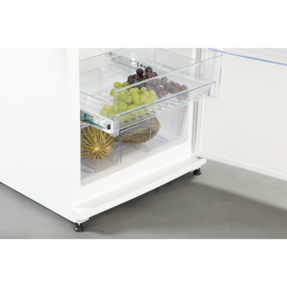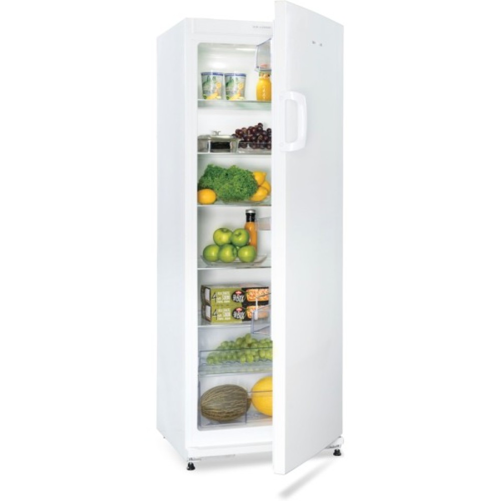 Загальний об'єм холодильника складає величезні 308 літрів, що дозволяє зберігати велику кількість продуктів, роблячи цей однокамерний холодильник ідеальним вибором для великої родини. Шість полиць із високоякісного матеріалу здатні витримати значні навантаження, в той час як дві дверні корзини та полиця для пляшок забезпечують зручність та раціональність у розміщенні продуктів. Спеціальна полиця для пляшок, розташована на дверцятах, гарантує надійну фіксацію напоїв, не займаючи зайвого простору на основних полицях.