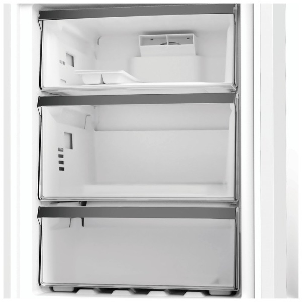 Дві незалежні системи No Frost гарантують ідеальні умови для зберігання продуктів і нескінченний комфорт у використанні холодильника. Система No Frost в холодильній камері автоматично встановлює рівень вологості і температуру, щоб виключити пересушування продуктів. No Frost в морозильній камері виключає утворення льоду і інею, а значить-Вам не потрібно буде витрачати час на її розмороження.