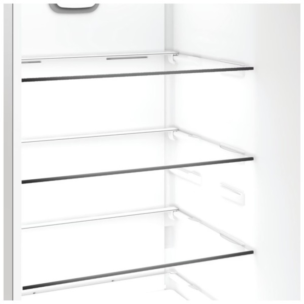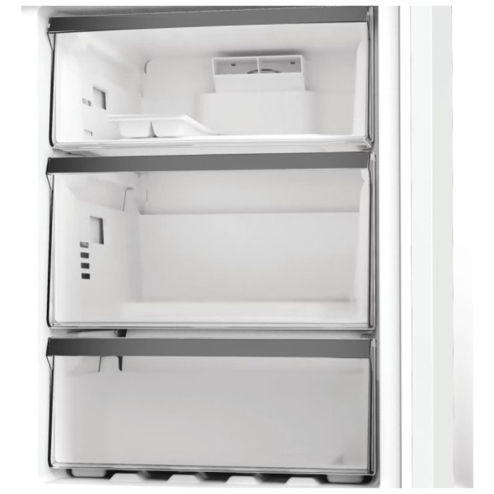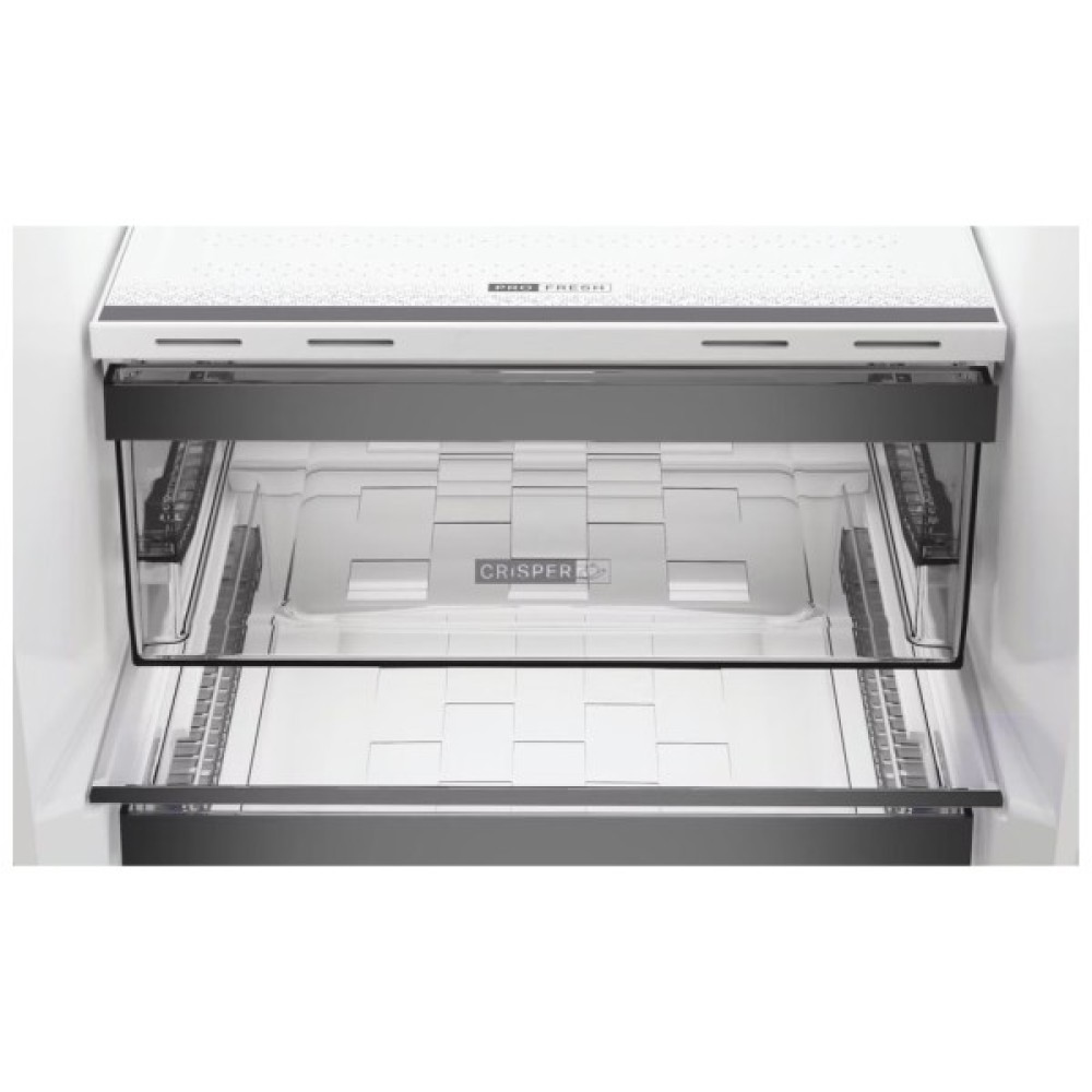 Морозильна камера також обладнана системою No Frost, що ліквідує необхідність ручного розморожування. Це означає, що продукти залишаються свіжими без зусиль з вашого боку, а догляд за холодильником стає простішим та менш трудомістким.