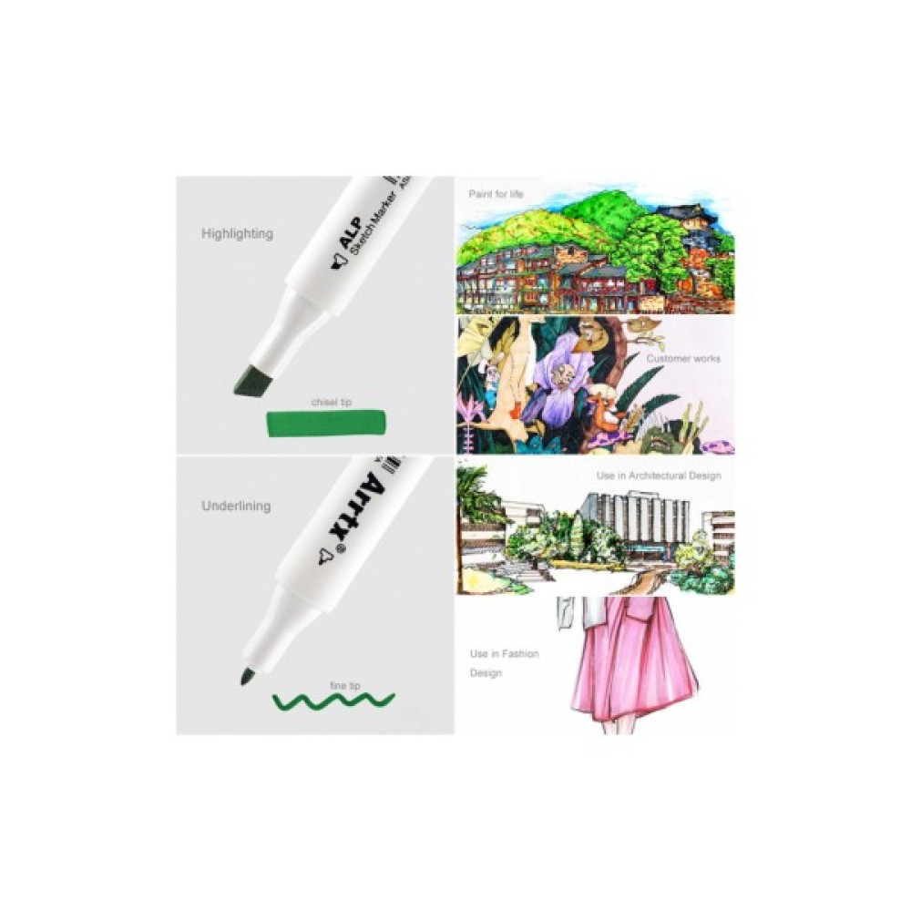 80 яскравих кольорів: яскраві та насичені маркери з високим ступенем пігментації зберігають відтінок і добре розтушовують, додаючи об'ємності вашим роботам. 80 сумісних кольорів можуть задовольнити всі ваші потреби, включно з виділенням, рендерингом, начерками, ілюстраціями, дизайном і багато іншого з прекрасними деталями.