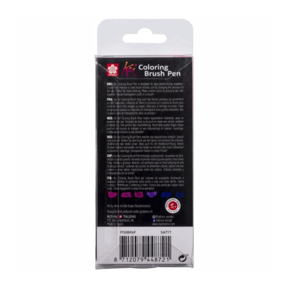 Маркери-пензлі KOI від SAKURA створюють чудові роботи, будучи альтернативою класичним акварельним фарбам та пензлям.Товщина лінії змінюється, залежно від сили натиску на стрижень.Гнучкий нейлоновий пензель маркера дуже стійкий, та швидко повертається до початкової форми.Маркери на водній основі, легко змішуються між собою, і створюють делікатне нашарування кольорів.Можна розмивати водою. При роботі із блендером можна досягнути плавного переходу кольору і створити ідеальний градієнт. Найкращий результат проявляється на цупкому папері - гладкому або акварельному, але не на глянцевому. Для ілюстрацій, скетчів, технічного рисунку (для архітекторів), журналінгу, друку із резиновими штампами, в техніках манга, комікси, мультиплікації, скрапбукінг та кардмейкінг. Виробник: SAKURA (Японія)