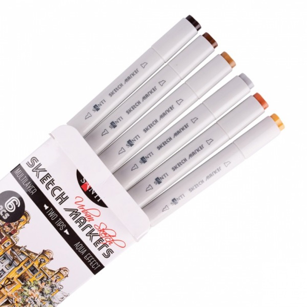 Скетч-маркери SANTI - це безмежні можливості для ваших малюнків! Тематичний набір "Urban Sketch" з 6 маркерів стане незамінним помічником для малювання міських пейзажів.