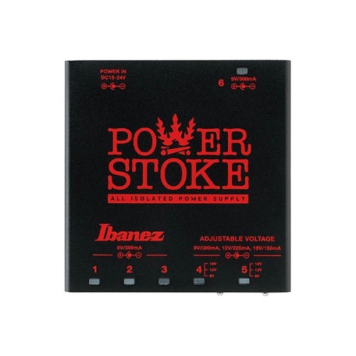 Ibanez PWRS6U Power Stroke – компактний блок живлення для педалбордів з повністю ізольованими виходами, що гарантує стабільну роботу навіть з вимогливими цифровими ефектами. Завдяки поєднанню високої потужності та мінімального рівня шуму, це оптимальне рішення для гітаристів, які використовують декілька педалей одночасно.