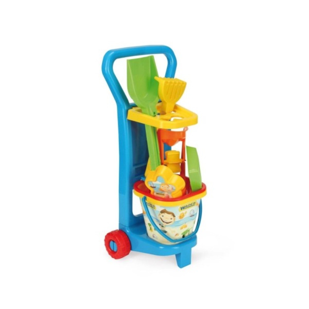 Ігровий набір від Wader принесе дитині безмежну кількість задоволення від гри. Цей яскравий і барвистий набір включає в себе візок, відерце і набір для піску.