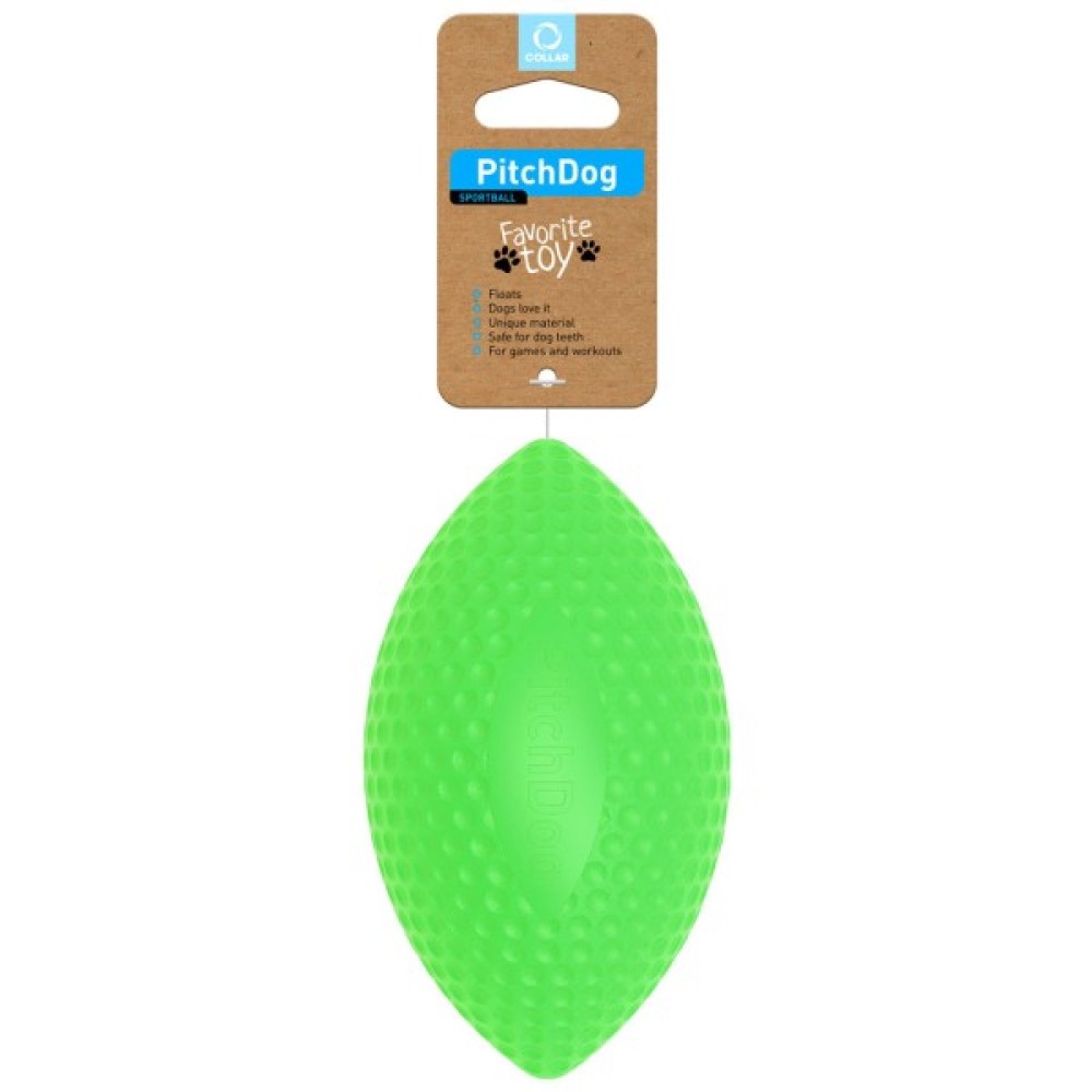 Виготовлений у формі м'яча для американського футболу, він ідеально підходить для дальніх кидків. Спортивний м'яч PitchDog гарантує господареві та його собаці активне проведення часу під час прогулянок на природі або ігор на воді. Не варто ховати іграшку й перебуваючи в приміщенні. Вона допоможе стимулювати рухливість собаки в домашніх умовах. Вихованець із радістю ганятиме м'яч підлогою, отримуючи задоволення від непередбачуваної траєкторії руху.