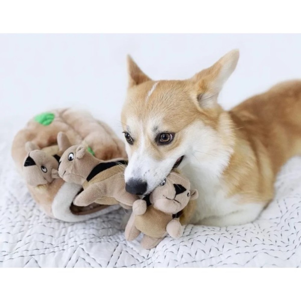 Що може бути кращим ніж гонитва за білками у парку? Звичайно ж, полювання на білок вдома! Нарешті у вихованця з'явиться іграшкова версія його улюбленої забави. Просто покладіть білок в стовбур м'якого дерева та спостерігайте як вихованець витягає білок – одну за одною. Щоб продовжити гру - просто поверніть білок назад у м'який стовбур. Ці білочки охочі до гри!