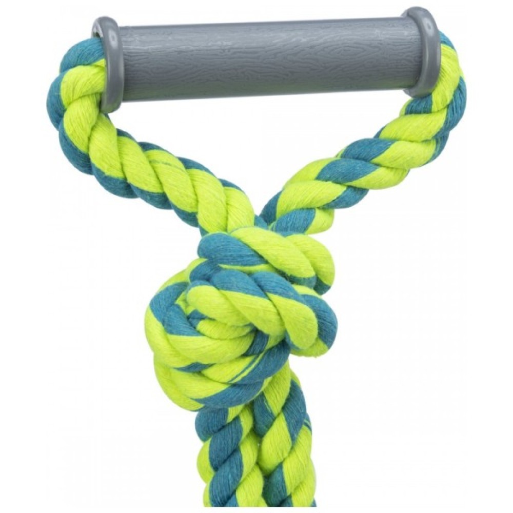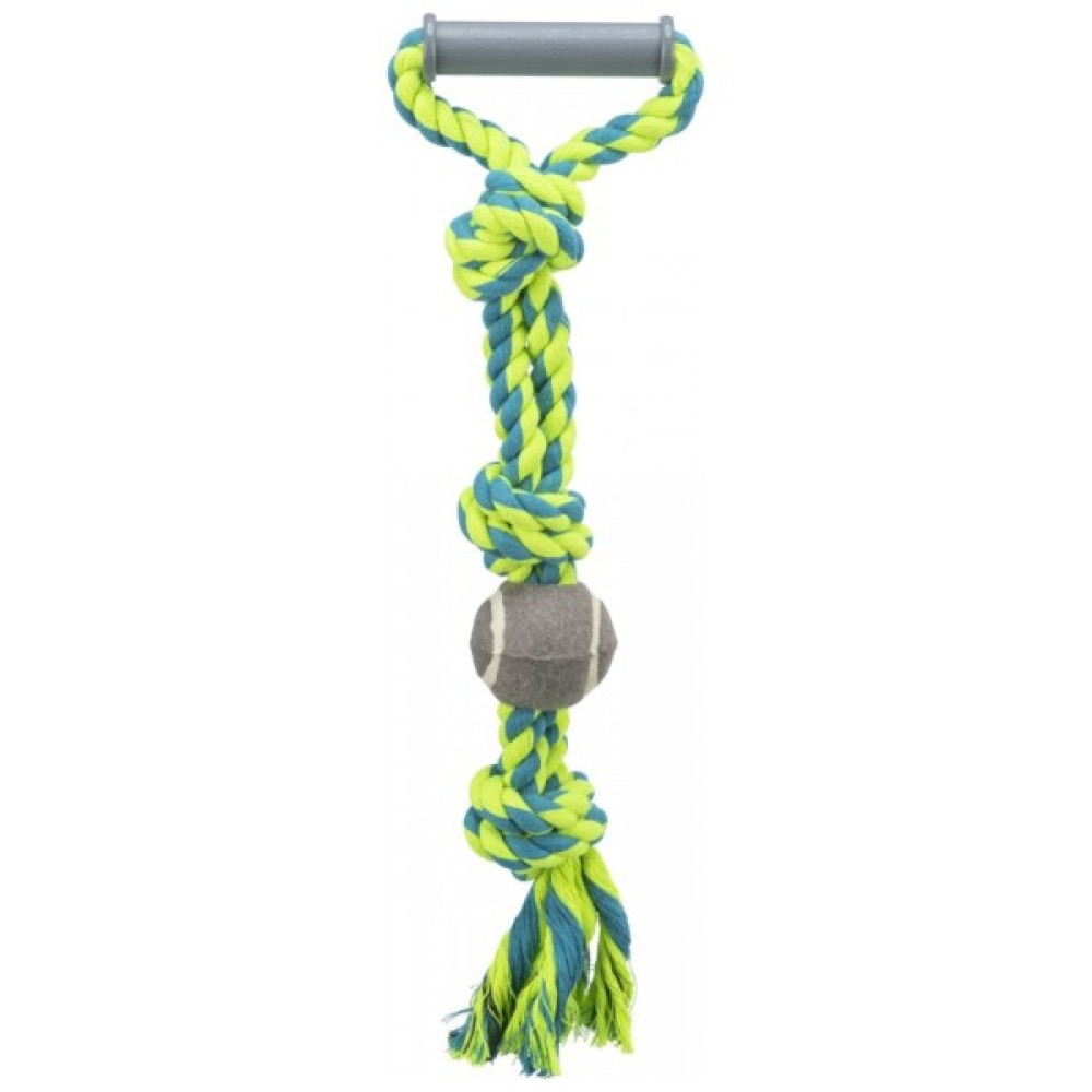 Кожний турботливий господар бажає, щоб його тваринка була щасливою і життєрадісною. Бренд Trixie повністю згоден з таким бажанням, а тому пропонує свою розробку Іграшка для собак Trixie Канат плетений з ручкою та м'ячем 50 см, d:6 см (текстиль), здатну розвивати вашого улюбленця та дарувати йому гарний настрій