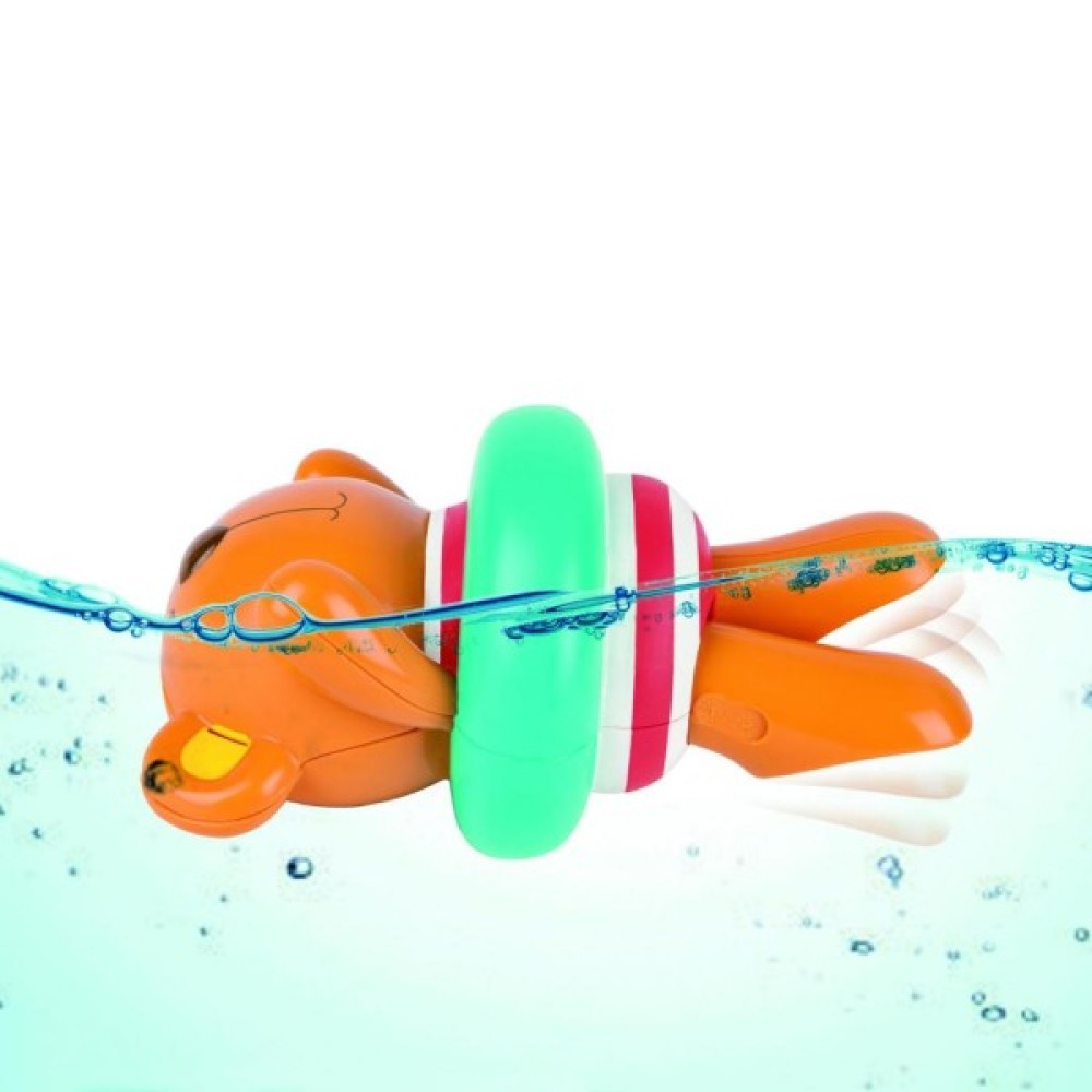 Милий ведмедик в рятувальному колі виглядає дуже яскраво і весело. Його можна купати у ванні: він не тоне, вміє бризкатися водою і, якщо завести механізм, жваво плаває. Основні переваги: милий дизайн, безпечні для малюка матеріали, зручна форма для легкого тримання маленькими ручками, ведмедик не тоне у воді, може плавати і бризкатися водою.